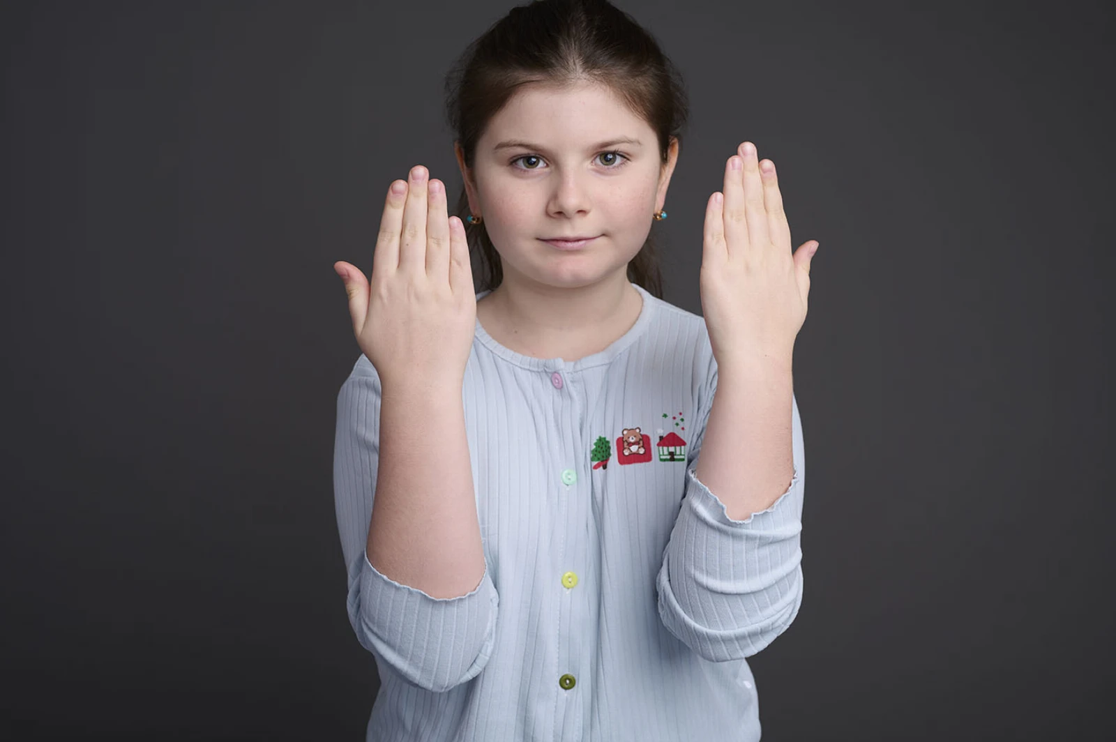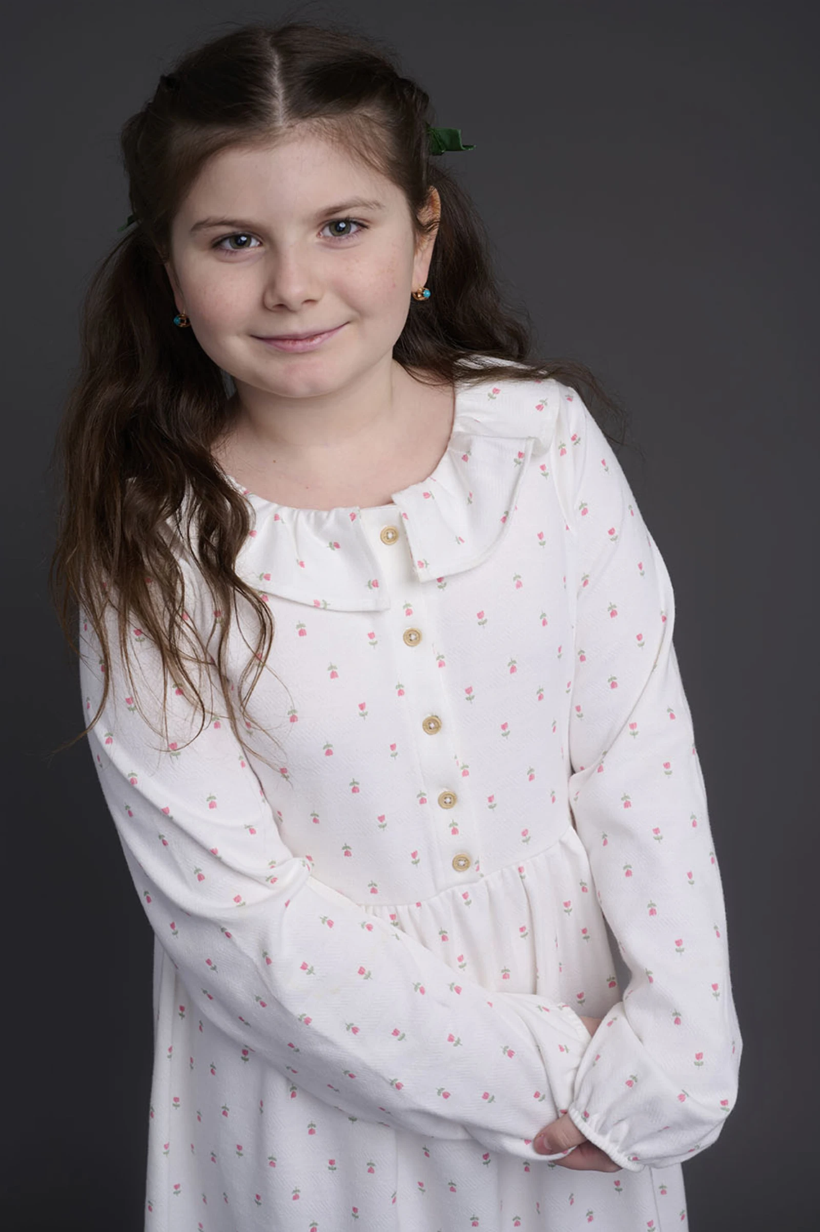 Скромная и застенчивая, но при этом уверенно держится перед камерой. Внимательная, аккуратная и очень собранная.