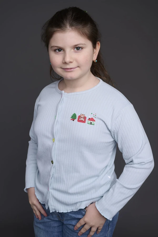 Играла в сценке по мотивам «Гарри Поттера», где исполнила роль Гермионы - умной, правильной и целеустремлённой. В кино хотела бы сыграть Лизу из сериала «Папины дочки», потому что этот образ ей близок: она любит учиться и стремится быть лучшей.