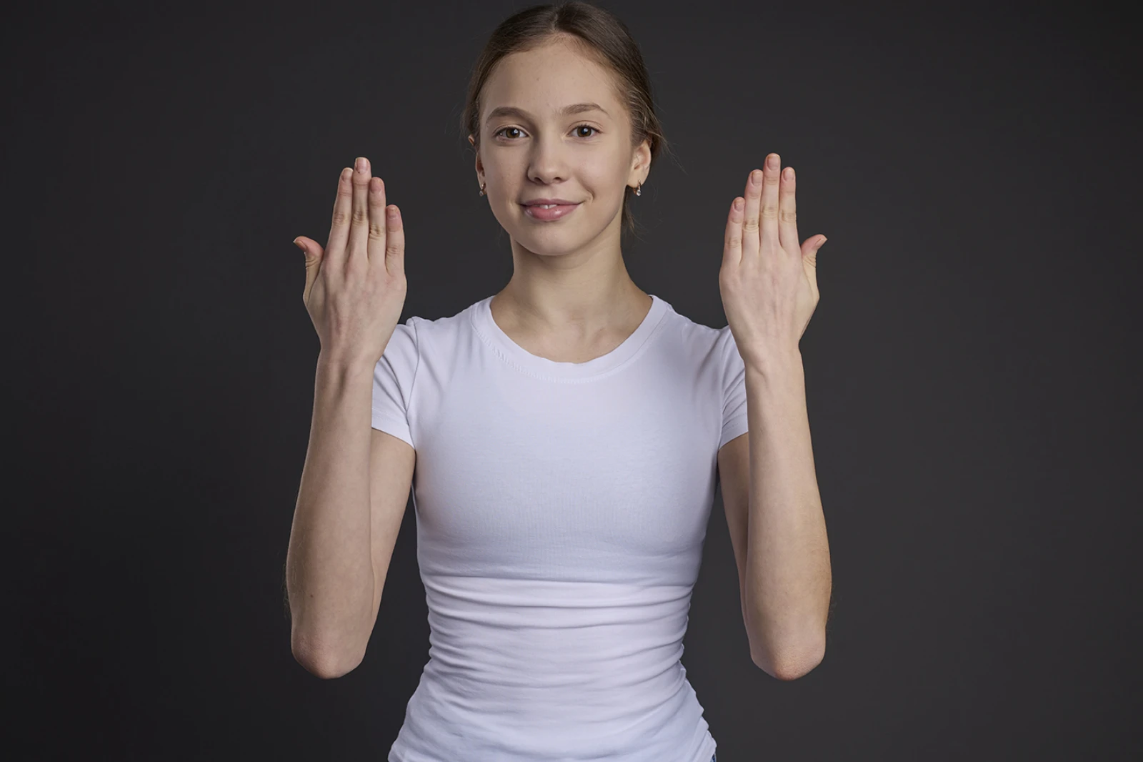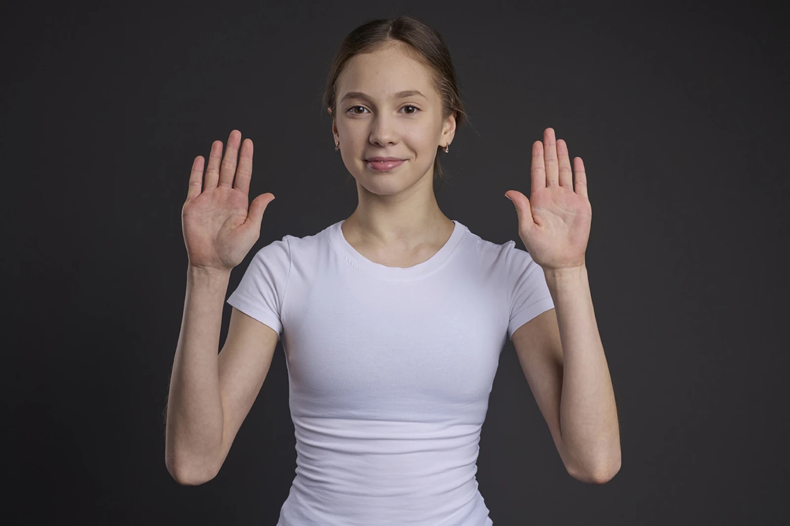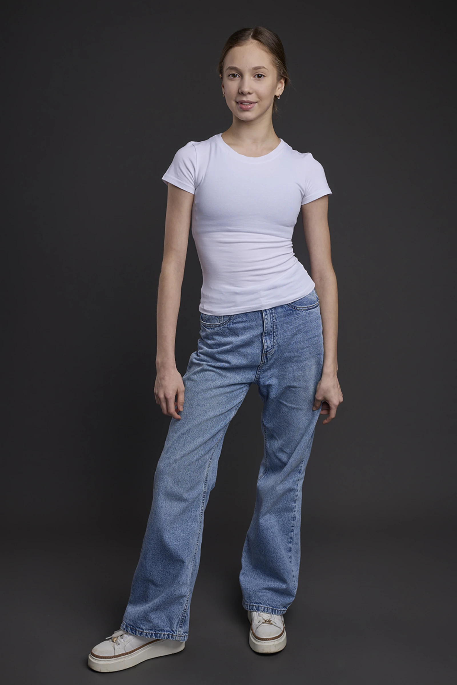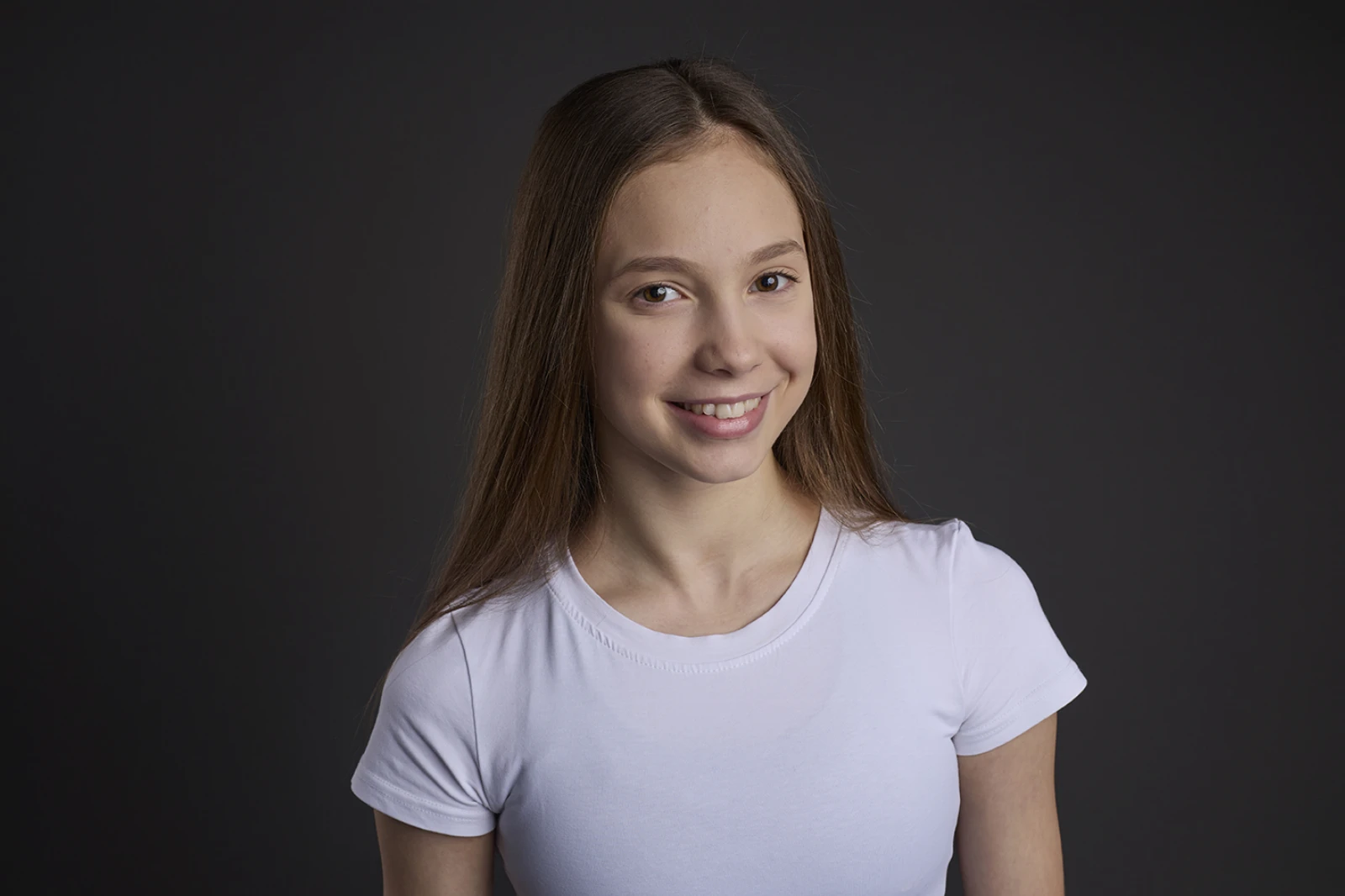Занимается художественной гимнастикой. Собранная, дисциплинированная, улыбчивая, уверенно чувствует себя перед камерой.